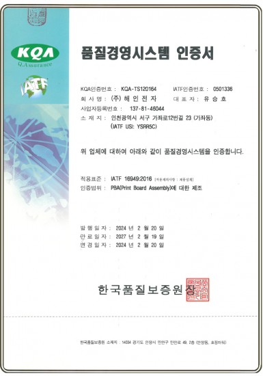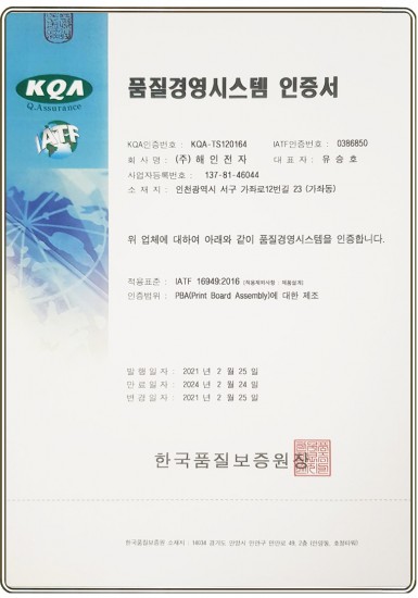 IATF 16949 인증서