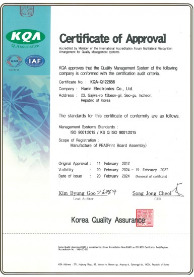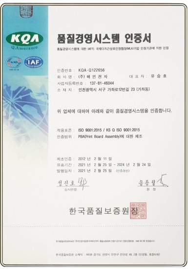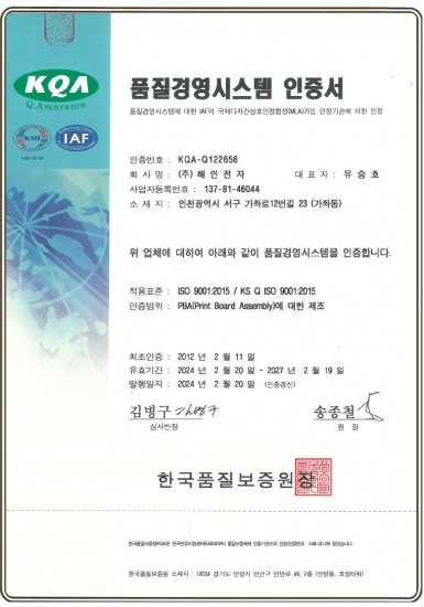 ISO 9001 인증서
