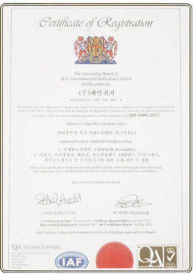 ISO 14001 인증서