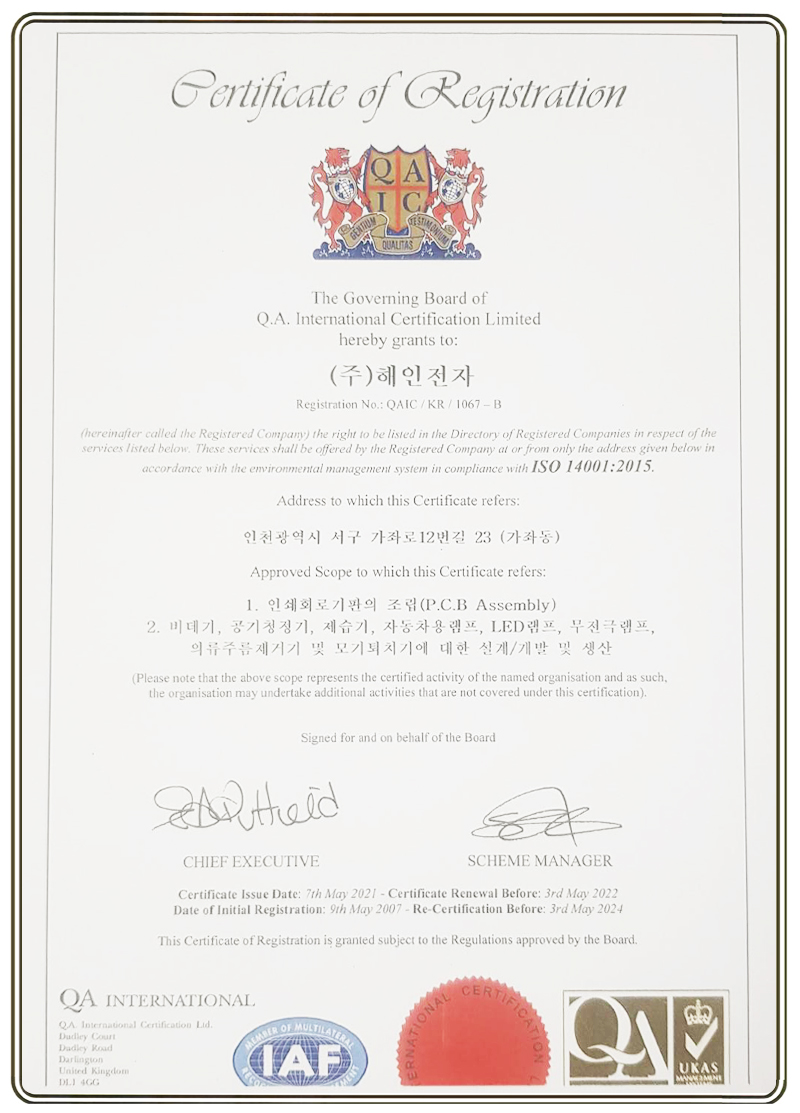 ISO 14001 인증서 페이지 정보 작성자 해인전자 댓글 0건 조회 320회 작성일 21-06-29 12:10 목록 본문 ISO 14001 인증서 이전글IATF 16949 인증서 21.06.29 다음글ISO 9001 인증서 21.06.29 댓글 0 댓글목록 등록된 댓글이 없습니다.