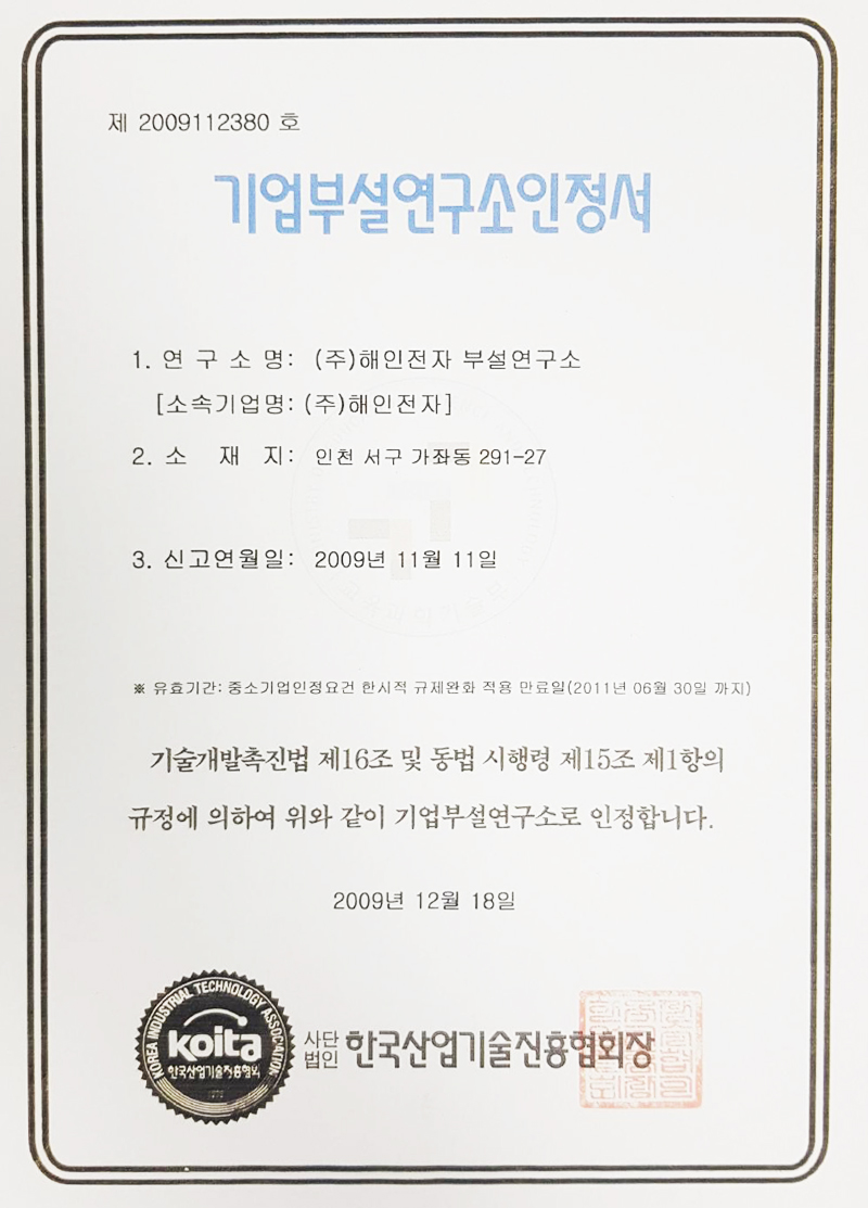 기업부설연구소인정서 페이지 정보 작성자 해인전자 댓글 0건 조회 286회 작성일 21-07-12 14:47 목록 본문 기업부설연구소인정서 이전글ISO 9001 인증서 21.06.29 댓글 0 댓글목록 등록된 댓글이 없습니다.